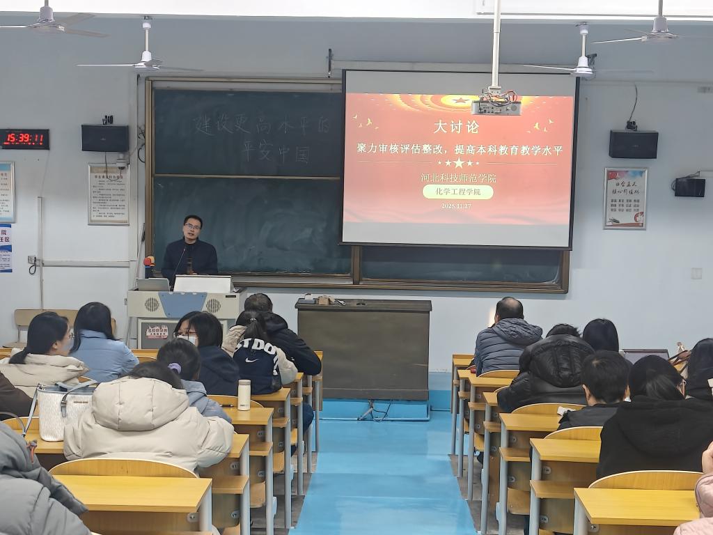 为落实学校本科教育教学审核评估整改工作要求,全面推进教育教学改革与内涵建设,化学工程学院于近日组织召开了“聚力审核评估整改,提高本科教育教学水平”专题研讨会。学院全体教职工参加了本次会议,共同围绕专业建设、课程改革、教师发展与人才培养等议题展开深入研讨。会议由院长主持,各专业带头人结合前期调研与专业实际,系统汇报了当前建设成效、存在问题及未来规划。