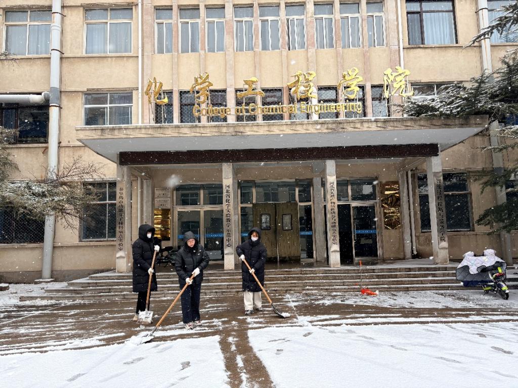 当日,化学工程学院正组织全院教师开展实验室安全培训。为保障培训活动安全有序开展、方便师生顺利通行,学院实验中心教师主动担当、顶风冒雪,迅速投入校园积雪清扫工作。
