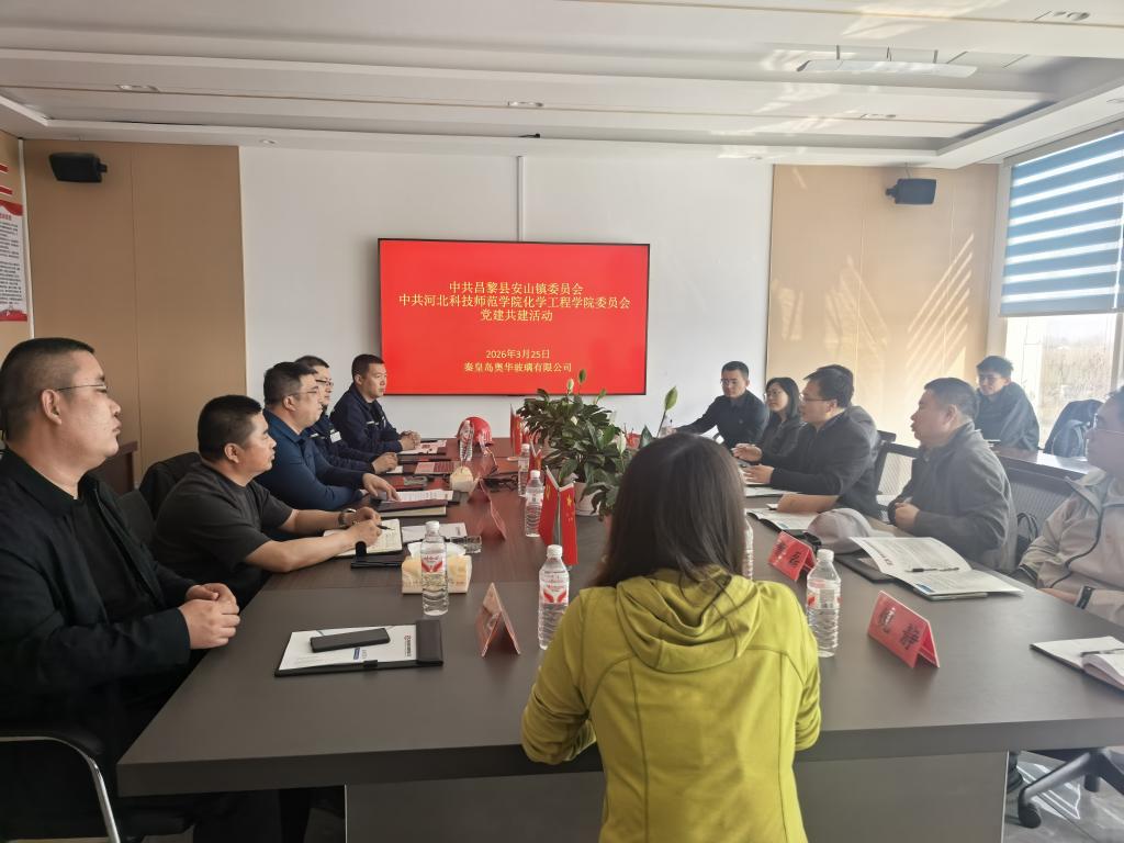 近日,化学工程学院党委与安山镇党委联合赴秦皇岛奥华玻璃有限公司开展党建共建主题活动,以党建为引领,深化产教融合、校地协同,探索校企合作高质量发展新路径,推动党建优势转化为发展优势、合作优势。